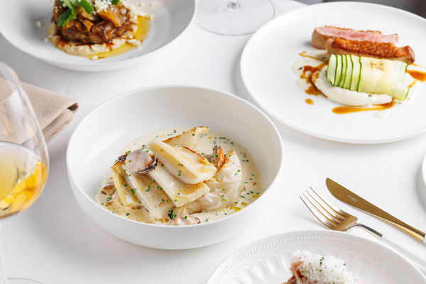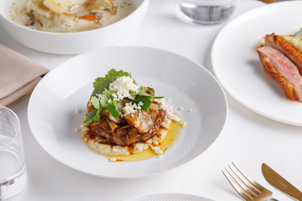 Тему даров моря продолжает кальмар на гриле — его подают с бархатистым кремом из фасоли и соусом на основе белого вина. Для тех, кто ищет более сложные текстуры, в меню появился картофельный гратен, который обжаривают до золотистой корочки и дополняют вяленой уткой в сопровождении трюфельного айоли и сыра пекорино.